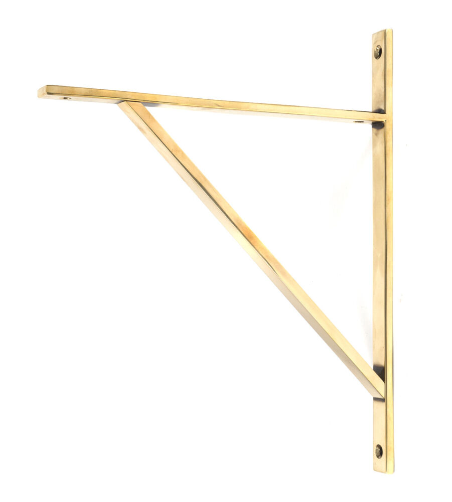 From The Anvil Aged Brass Chalfont Shelf Bracket (314mm x 250mm)£128.00 inc VAT Height: 314mm Projection: 250mm Thickness: 6.5mm Fixing Centres: 284mm NOTE: This product is only available for online delivery and not for pick up from our trade counter Refresh Captcha From The Anvil Aged Brass Chalfont Shelf Bracket (314mm x 250mm) quantity Add to cart SKU: 51156 Categories: All New, Brackets, Accessories, All Accessories Description Additional information Description With its straight, angular edges and strong shape, the Chalfont collection is an effortless blend of form and function. These shelf brackets are forged from solid brass which emphasises the high quality materials and manufacturing techniques used. A perfect design choice to use for any shelving with many other matching products available. Available in two different sizes. Sold in singles. SS fixings Our Aged Brass products are made from solid, unlacquered brass and are intentionally tarnished using an accelerated ageing process that causes a dark patina to gather around the edges and recesses of the design. This rich colour offers a beautiful contrast against the repolished surface areas, offering an abundance of charm and character perfect for any period dwelling. Additional information Color Aged Brass Manufacturer From The Anvil Unit of Sale Each Related products From The Anvil Pewter Avon Round Lever on Rose Set (Beehive) £154.57 inc VAT Add to cart From The Anvil External Beeswax Avon Round Lever on Rose Set (Square) £162.28 inc VAT Add to cart From The Anvil Pewter Avon Round Lever on Rose Set (Plain) £154.57 inc VAT Add to cart From The Anvil Pewter Avon Round Lever on Rose Set (Square) £162.28 inc VAT Add to cart From The Anvil Pewter Avon Round Lever on Rose Set (Art Deco) £154.57 inc VAT Add to cart