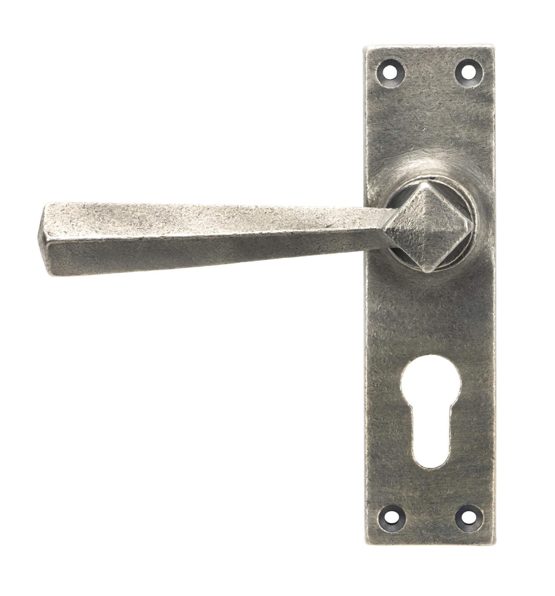From The Anvil Antique Pewter Straight Lever Euro Lock Set£58.76 inc VAT Backplate Size: 148mm x 39mm x 8mm Handle Length: 124mm Centres: 47mm NOTE: This product is only available for online delivery and not for pick up from our trade counter Refresh Captcha From The Anvil Antique Pewter Straight Lever Euro Lock Set quantity Add to cart SKU: 45760 Categories: All New, All Lever Handles, All Door Furniture, Lever Handles, Straight Range Description Additional information Description The straight set is part of the period range of sprung lever handles. A simplistic design that will suit both traditional and contemporary settings. Lever handle for internal and external doors where locking is required. Set includes 2 lever euro handles. Can be used with an euro sash lock in conjunction with a euro cylinder. Supplied with matching SS wood screws. The antique pewter finish is the result of a complex process applied to solid brass, offering an attractive alternative to pewter patina. As this finish is applied to brass rather than steel, it has fewer textural marks making it smoother than our pewter patina finish. Additional information Color Antique Pewter Manufacturer From The Anvil Unit of Sale Set You may also like… From The Anvil Antique Pewter Straight Lever Latch Set £46.97 inc VAT Add to cart From The Anvil Pewter 4″ Butt Hinge (pair) £15.95 inc VAT Add to cart From The Anvil Pewter 3” Butt Hinge (pair) £11.82 inc VAT Add to cart From The Anvil Antique Pewter Straight Lever Lock Set £47.00 inc VAT Add to cart From The Anvil Pewter 4″ Ball Bearing Butt Hinge (Pair) £34.88 inc VAT Add to cart From The Anvil Pewter 3″ Ball Bearing Butt Hinge (Pair) £31.69 inc VAT Add to cart Related products From The Anvil External Beeswax Avon Round Lever on Rose Set (Square) £162.28 inc VAT Add to cart From The Anvil Pewter Avon Round Lever on Rose Set (Beehive) £154.57 inc VAT Add to cart From The Anvil Pewter Avon Round Lever on Rose Set (Plain) £154.57 inc VAT Add to cart From The Anvil Pewter Avon Round Lever on Rose Set (Art Deco) £154.57 inc VAT Add to cart From The Anvil Pewter Avon Round Lever on Rose Set (Square) £162.28 inc VAT Add to cart