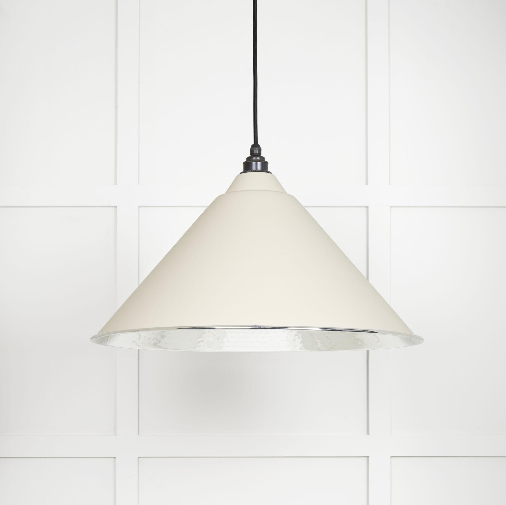 From The Anvil Hammered Nickel Hockley Pendant in Teasel£440.83 inc VAT Diameter: 510mm Height: 290mm Rose Diameter: 120mm Weight: 2.15kg Fitting: E27 Bulb: LED Only – 6W Maximum (purchased separately) NOTE: This product is only available for online delivery and not for pick up from our trade counter Refresh Captcha From The Anvil Hammered Nickel Hockley Pendant in Teasel quantity Add to cart SKU: 45433TE Categories: All Shapes, Lighting, All Hockley Pendants, Hammered Nickel, All Hammered Pendants Description Additional information Description The Hockley pendant has a sleek silhouette and is dramatic in size. It creates interest on its own and looks fantastic in a cluster. Our pendants are all made to order on a 3-4 week lead time. Light fittings are dimmable as long as a dimmable LED bulb is fitted. Supplied fully wired with matching ceiling rose and all necessary fixings. 1.5m of black fabric cable as standard. Please avoid using any form of chemical cleaner on our pendants. We recommend lightly buffing with a dry cloth so as not to damage the finish. Our pendants are available in a wide choice of finishes and colours. We also offer bespoke colours. Please contact us for further information. Our Hammered Nickel pendants are spun from solid brass and plated in nickel. When lit the hammered interior glistens whilst emitting a soft dappled light. Additional information Color Hammered Nickel Manufacturer From The Anvil Unit of Sale Each Related products From The Anvil Hammered Nickel Harborne Pendant in Elan Black £449.30 inc VAT Add to cart From The Anvil Hammered Nickel Harborne Pendant in Flock £449.30 inc VAT Add to cart From The Anvil Hammered Nickel Harborne Pendant in Heath £449.30 inc VAT Add to cart From The Anvil Hammered Nickel Harborne Pendant in Soot £449.30 inc VAT Add to cart From The Anvil Hammered Nickel Harborne Pendant in Slate £449.30 inc VAT Add to cart