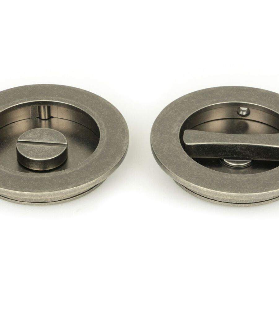 From The Anvil Pewter 75mm Plain Round Pull – Privacy Set£110.03 inc VAT Finish: Pewter Patina Type: Round Pulls – Privacy Range: Plain Range: Overall Size: 75 mm dia Internal Size: 50mm Projection: 13mm NOTE: This product is only available for online delivery and not for pick up from our trade counter Refresh Captcha From The Anvil Pewter 75mm Plain Round Pull - Privacy Set quantity Add to cart SKU: 50185 Categories: All Door Furniture, Sliding Door Furniture Description Additional information Description Our range of sliding door furniture is suitable for all sliding, pocket, and flush door systems. Our pewter patina finish is forged from a durable base of steel and is a fine example of how our unique manufacturing techniques add further detail to the natural charm of metals. The process by which the contrasting textures of this finish are created results in a rich appearance that sits well in characterful, rustic homes but also offers a contemporary alterative in more modern settings. Additional information Color Pewter Patina Manufacturer From The Anvil Unit of Sale Each Related products From The Anvil Black Regency Lever on Rose Set (Square) £149.28 inc VAT Add to cart From The Anvil External Beeswax Regency Lever on Rose Set (Square) £162.28 inc VAT Add to cart From The Anvil External Beeswax Regency Lever on Rose Set (Art Deco) £154.57 inc VAT Add to cart From The Anvil External Beeswax Regency Lever on Rose Set (Beehive) £154.57 inc VAT Add to cart From The Anvil External Beeswax Regency Lever on Rose Set (Plain) £154.57 inc VAT Add to cart