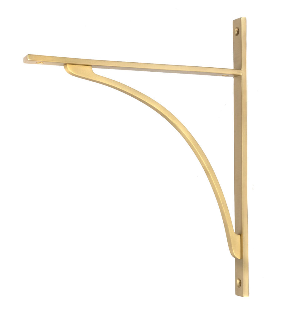 From The Anvil Satin Brass Apperley Shelf Bracket (314mm x 250mm)£128.00 inc VAT Height: 314mm Projection: 250mm Thickness: 6.5mm Fixing Centres: 284mm NOTE: This product is only available for online delivery and not for pick up from our trade counter Refresh Captcha From The Anvil Satin Brass Apperley Shelf Bracket (314mm x 250mm) quantity Add to cart SKU: 51137 Categories: All New, Brackets, Accessories, All Accessories Description Additional information Description The Apperley collection is truly timeless, featuring sleek curves which will transform any interior. These versatile brackets exude refined simplicity. These shelf brackets are forged from solid brass which emphasises the high quality materials and manufacturing techniques used. A perfect design choice to use for any shelving with many other matching products available. Available in two different sizes. Sold in singles. SS fixings Our Satin Brass products are made from solid brass. During the final stages of manufacturing, our Satin Brass products are brushed with a satin wheel to give them their distinctive appearance. A high-quality matt lacquer is then applied to their surface for protection. Satin Brass brings a sense of sophistication and offers a more contemporary alternative to Polished Brass. The rich, warm undertones of this finish exude luxury and are sure to create a statement in any space. Additional information Color Satin Brass Manufacturer From The Anvil Unit of Sale Each Related products From The Anvil Pewter Avon Round Lever on Rose Set (Art Deco) £154.57 inc VAT Add to cart From The Anvil External Beeswax Avon Round Lever on Rose Set (Square) £162.28 inc VAT Add to cart From The Anvil Pewter Avon Round Lever on Rose Set (Plain) £154.57 inc VAT Add to cart From The Anvil Pewter Avon Round Lever on Rose Set (Square) £162.28 inc VAT Add to cart From The Anvil Pewter Avon Round Lever on Rose Set (Beehive) £154.57 inc VAT Add to cart
