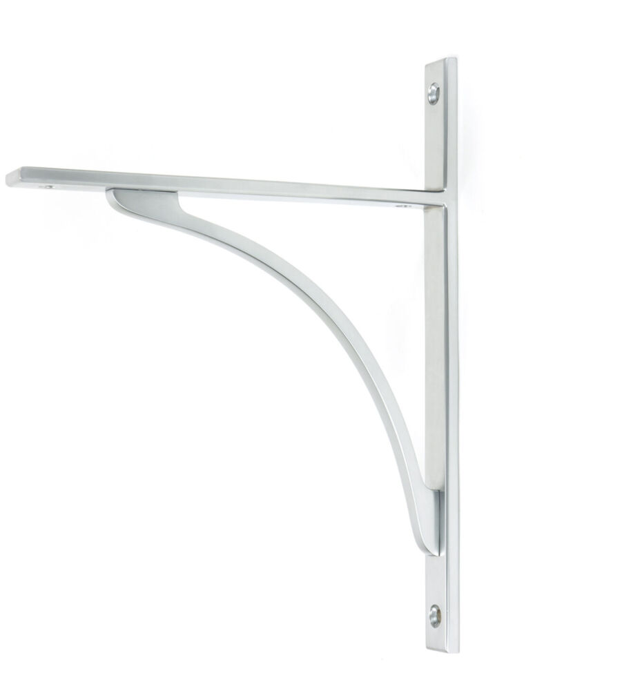 From The Anvil Satin Chrome Apperley Shelf Bracket (260mm x 200mm)£121.92 inc VAT Height: 260mm Projection: 200mm Thickness: 6.5mm Fixing Centres: 230mm NOTE: This product is only available for online delivery and not for pick up from our trade counter Refresh Captcha From The Anvil Satin Chrome Apperley Shelf Bracket (260mm x 200mm) quantity Add to cart SKU: 51130 Categories: All New, Brackets, Accessories, All Accessories Description Additional information Description The Apperley collection is truly timeless, featuring sleek curves which will transform any interior. These versatile brackets exude refined simplicity. These shelf brackets are forged from solid brass which emphasises the high quality materials and manufacturing techniques used. A perfect design choice to use for any shelving with many other matching products available. Available in two different sizes. Sold in singles. SS fixings Satin Chrome is crafted from a base of solid brass, with a high-quality chrome plating applied to its surface. It offers an understated alternative to Polished Chrome and is loved for its less reflective appearance and distinctive blue traces. A popular choice for those looking for a timeless matt finish. Additional information Color Satin Chrome Manufacturer From The Anvil Unit of Sale Each Related products From The Anvil Pewter Avon Round Lever on Rose Set (Square) £162.28 inc VAT Add to cart From The Anvil External Beeswax Avon Round Lever on Rose Set (Square) £162.28 inc VAT Add to cart From The Anvil Pewter Avon Round Lever on Rose Set (Art Deco) £154.57 inc VAT Add to cart From The Anvil Pewter Avon Round Lever on Rose Set (Plain) £154.57 inc VAT Add to cart From The Anvil Pewter Avon Round Lever on Rose Set (Beehive) £154.57 inc VAT Add to cart