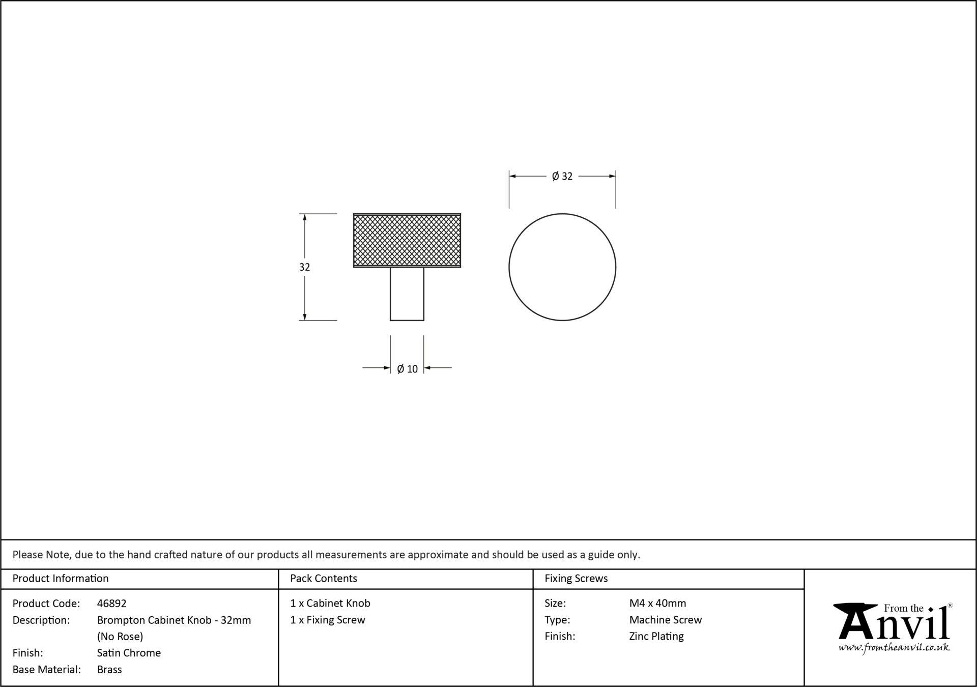 From The Anvil Satin Chrome Brompton Cabinet Knob – 32mm (No rose)£39.54 inc VAT Finish: Satin Chrome Type: Cabinet Knobs Range: Brompton Range: Knob Size: 32mm Dia Projection: 32mm NOTE: This product is only available for online delivery and not for pick up from our trade counter Refresh Captcha From The Anvil Satin Chrome Brompton Cabinet Knob - 32mm (No rose) quantity Add to cart SKU: 46892 Categories: All Cabinet Furniture, All Cabinet Knobs, Brompton Range Description Additional information Description The brompton suite is our most contemporary design to date, and features a textured knurled pattern. The industrial styling of the diamond effect creates a modern range of products that can be used throughout your property. Satin chrome is created from a base metal of solid brass with a quality chrome plating applied to its surface. Satin chrome offers an understated alternative to polished chrome. Its blue traces and less reflective appearance make this finish popular with those who wish to elect a matt finish. Additional information Color Satin Chrome Manufacturer From The Anvil Unit of Sale Each Related products From The Anvil Polished Chrome Cabinet Latch £48.00 inc VAT Add to cart From The Anvil Polished Nickel Cabinet Latch £46.00 inc VAT Add to cart From The Anvil Aged Brass Cabinet Latch £43.98 inc VAT Add to cart From The Anvil Polished Bronze Hammered Regency Concealed Drawer Pull £45.46 inc VAT Add to cart From The Anvil Aged Bronze Cabinet Latch £53.98 inc VAT Add to cart