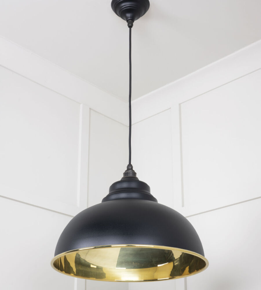From The Anvil Smooth Brass Harborne Pendant in Elan Black£449.30 inc VAT Diameter: 400mm Height: 270mm Rose Diameter: 120mm Weight: 2.2kg Fitting: E27 Bulb: LED Only – 6W Maximum (purchased separately) NOTE: This product is only available for online delivery and not for pick up from our trade counter Refresh Captcha From The Anvil Smooth Brass Harborne Pendant in Elan Black quantity Add to cart SKU: 49522EB Categories: All Shapes, Lighting, All Harborne Pendants, All Smooth Pendants, Smooth Brass Description Additional information Description The Harborne pendant embodies classic British design. It’s rounded edges and satisfying proportions make it the focal point in any room. Our pendants are all made to order on a 3-4 week lead time. Light fittings are dimmable as long as a dimmable LED bulb is fitted. Supplied fully wired with matching ceiling rose and all necessary fixings. 1.5m of black fabric cable as standard. Please avoid using any form of chemical cleaner on our pendants. We recommend lightly buffing with a dry cloth so as not to damage the finish. Our pendants are available in a wide choice of finishes and colours. We also offer bespoke colours. Please contact us for further information. Spun from solid brass and highly polished our Smooth Brass pendants create a luxurious look. When lit the sleek brass interior creates a subtle warm light. Additional information Color Smooth Brass Manufacturer From The Anvil Unit of Sale Each Related products From The Anvil Hammered Nickel Harborne Pendant in Dusk £449.30 inc VAT Add to cart From The Anvil Hammered Nickel Harborne Pendant in Elan Black £449.30 inc VAT Add to cart From The Anvil Hammered Nickel Harborne Pendant in Heath £449.30 inc VAT Add to cart From The Anvil Hammered Nickel Harborne Pendant in Slate £449.30 inc VAT Add to cart From The Anvil Hammered Nickel Harborne Pendant in Flock £449.30 inc VAT Add to cart
