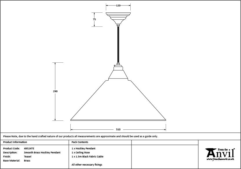From The Anvil Smooth Brass Hockley Pendant in Teasel£440.83 inc VAT Diameter: 510mm Height: 290mm Rose Diameter: 120mm Weight: 2.15kg Fitting: E27 Bulb: LED Only – 6W Maximum (purchased separately) NOTE: This product is only available for online delivery and not for pick up from our trade counter Refresh Captcha From The Anvil Smooth Brass Hockley Pendant in Teasel quantity Add to cart SKU: 49524TE Categories: All Shapes, Lighting, All Hockley Pendants, All Smooth Pendants, Smooth Brass Description Additional information Description The Hockley pendant has a sleek silhouette and is dramatic in size. It creates interest on its own and looks fantastic in a cluster. Our pendants are all made to order on a 3-4 week lead time. Light fittings are dimmable as long as a dimmable LED bulb is fitted. Supplied fully wired with matching ceiling rose and all necessary fixings. 1.5m of black fabric cable as standard. Please avoid using any form of chemical cleaner on our pendants. We recommend lightly buffing with a dry cloth so as not to damage the finish. Our pendants are available in a wide choice of finishes and colours. We also offer bespoke colours. Please contact us for further information. Spun from solid brass and highly polished our Smooth Brass pendants create a luxurious look. When lit the sleek brass interior creates a subtle warm light. Additional information Color Smooth Brass Manufacturer From The Anvil Unit of Sale Each Related products From The Anvil Hammered Nickel Harborne Pendant in Slate £449.30 inc VAT Add to cart From The Anvil Hammered Nickel Harborne Pendant in Elan Black £449.30 inc VAT Add to cart From The Anvil Hammered Nickel Harborne Pendant in Dusk £449.30 inc VAT Add to cart From The Anvil Hammered Nickel Harborne Pendant in Heath £449.30 inc VAT Add to cart From The Anvil Hammered Nickel Harborne Pendant in Flock £449.30 inc VAT Add to cart