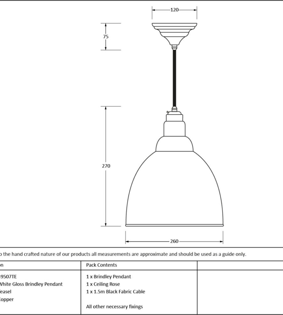 From The Anvil White Gloss Brindley Pendant in Teasel£406.92 inc VAT Diameter: 260mm Height: 270mm Rose Diameter: 120mm Weight: 1.15kg Fitting: E27 Bulb: LED Only – 6W Maximum (purchased separately) NOTE: This product is only available for online delivery and not for pick up from our trade counter Refresh Captcha From The Anvil White Gloss Brindley Pendant in Teasel quantity Add to cart SKU: 49507TE Categories: All Shapes, All Brindley Pendants, Lighting, Accent Description Additional information Description The Brindley pendant is versatile. It can be hung at different levels to brighten certain areas within a room and looks great in a group. Our pendants are all made to order on a 3-4 week lead time. Light fittings are dimmable as long as a dimmable LED bulb is fitted. Supplied fully wired with matching ceiling rose and all necessary fixings. 1.5m of black fabric cable as standard. Please avoid using any form of chemical cleaner on our pendants. We recommend lightly buffing with a dry cloth so as not to damage the finish. Our pendants are available in a wide choice of finishes and colours. We also offer bespoke colours. Please contact us for further information. Our Accent pendants are spun from solid copper. When lit the white gloss interior bounces light and creates a radiant glow the brightest of our finishes. These pendants work well with a warmer bulb. Additional information Color Accent Manufacturer From The Anvil Unit of Sale Each Related products From The Anvil Hammered Nickel Harborne Pendant in Heath £449.30 inc VAT Add to cart From The Anvil Hammered Nickel Harborne Pendant in Slate £449.30 inc VAT Add to cart From The Anvil Hammered Nickel Harborne Pendant in Dusk £449.30 inc VAT Add to cart From The Anvil Hammered Nickel Harborne Pendant in Elan Black £449.30 inc VAT Add to cart From The Anvil Hammered Nickel Harborne Pendant in Flock £449.30 inc VAT Add to cart