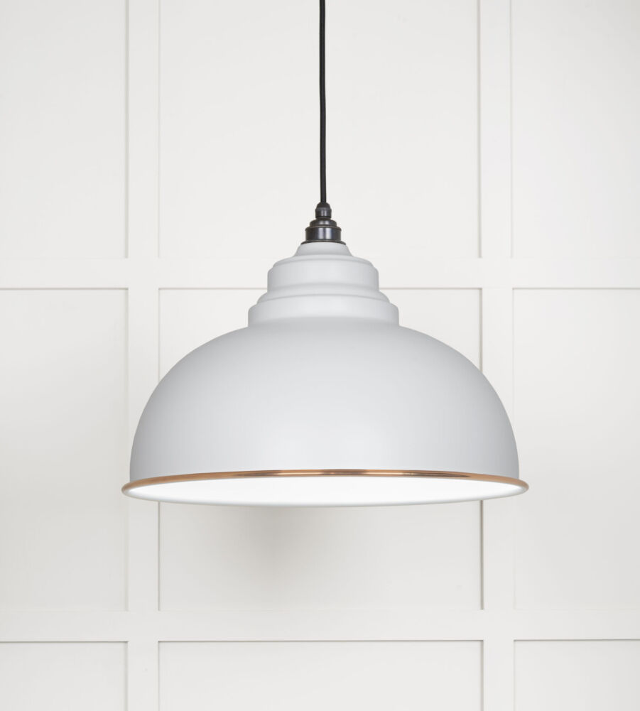 From The Anvil White Gloss Harborne Pendant in Flock£449.30 inc VAT Diameter: 400mm Height: 270mm Rose Diameter: 120mm Weight: 2.2kg Fitting: E27 Bulb: LED Only – 6W Maximum (purchased separately) NOTE: This product is only available for online delivery and not for pick up from our trade counter Refresh Captcha From The Anvil White Gloss Harborne Pendant in Flock quantity Add to cart SKU: 49508F Categories: All Shapes, Lighting, All Harborne Pendants, Accent Description Additional information Description The Harborne pendant embodies classic British design. It’s rounded edges and satisfying proportions make it the focal point in any room. Our pendants are all made to order on a 3-4 week lead time. Light fittings are dimmable as long as a dimmable LED bulb is fitted. Supplied fully wired with matching ceiling rose and all necessary fixings. 1.5m of black fabric cable as standard. Please avoid using any form of chemical cleaner on our pendants. We recommend lightly buffing with a dry cloth so as not to damage the finish. Our pendants are available in a wide choice of finishes and colours. We also offer bespoke colours. Please contact us for further information. Our Accent pendants are spun from solid copper. When lit the white gloss interior bounces light and creates a radiant glow the brightest of our finishes. These pendants work well with a warmer bulb. Additional information Color Accent Manufacturer From The Anvil Unit of Sale Each Related products From The Anvil Hammered Nickel Harborne Pendant in Dusk £449.30 inc VAT Add to cart From The Anvil Hammered Nickel Harborne Pendant in Flock £449.30 inc VAT Add to cart From The Anvil Hammered Nickel Harborne Pendant in Elan Black £449.30 inc VAT Add to cart From The Anvil Hammered Nickel Harborne Pendant in Heath £449.30 inc VAT Add to cart From The Anvil Hammered Nickel Harborne Pendant in Slate £449.30 inc VAT Add to cart